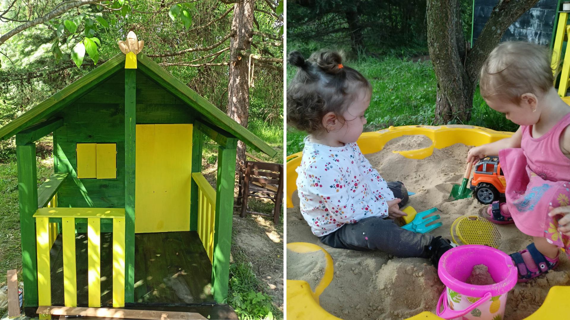 Najmłodsi mogą bawić się w domku, korzystać ze ścianki wspinaczkowej, huśtawki, zjeżdżalni i piaskownicy, a także spełniać się artystycznie rysując kredą.